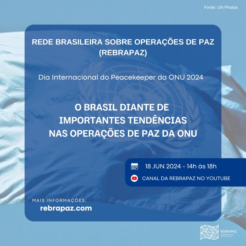 A REBRAPAZ convida a todos para participar de um seminário online em homenagem ao Dia Internacional do Peacekeeper da ONU (2024), cujo tema é “O Brasil diante de importantes tendências nas operações de paz da ONU”. A atividade será realizada no dia 18/06, das 14h às 18h, com transmissão ao vivo pelo YouTube.