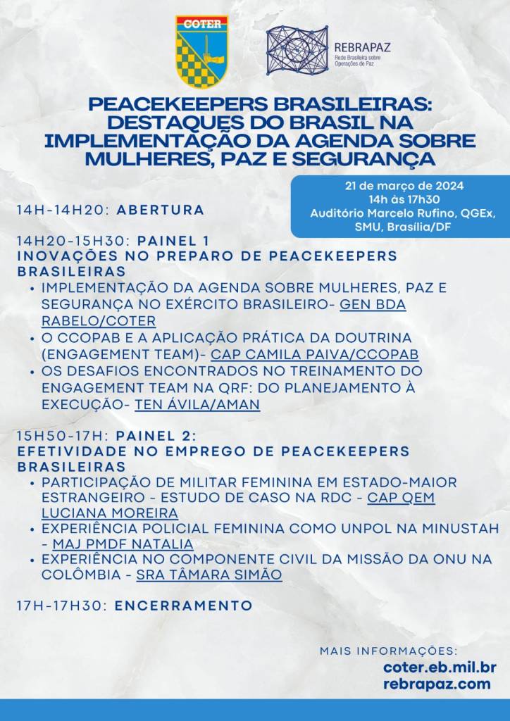 GBN News. “Brasil destaca papel das mulheres nas Missões de Paz da ONU em Seminário promovido pelo Exército”. 22/03/2024. Disponível em: https://www.gbnnews.com.br/2024/03/brasil-destaca-papel-das-mulheres-nas.html