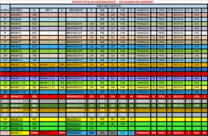 Efetivo total do CONTBRAS/HAITI – atualizado em 15/03/2017