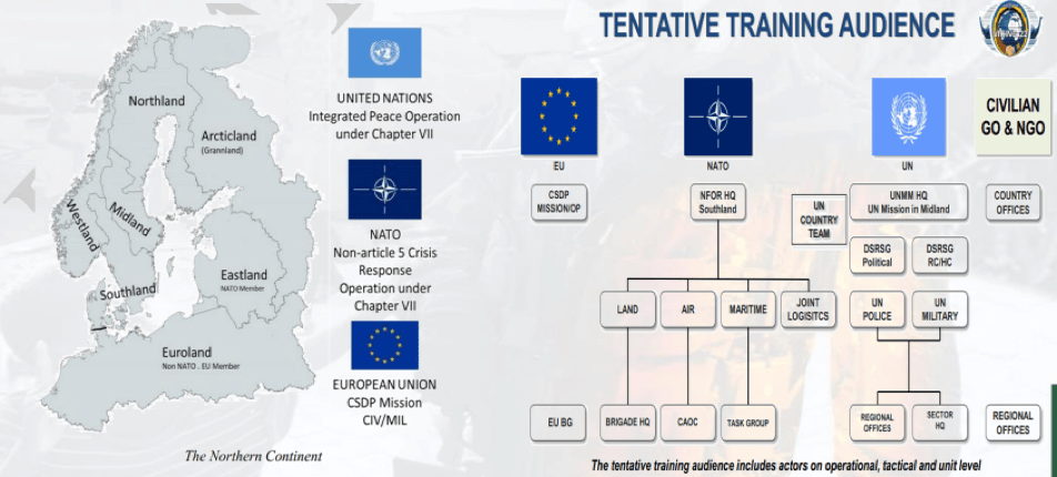 Pela segunda vez consecutiva, o Brasil foi convidado a participar do Exercício VIKING, especificamente para assumir a coordenação do jogo em um dos sites remotos (agora designado Site Brazil), que sediará o Setor 2 da fictícia “UN Mission in Midland” (UNMIM). O Setor 2 será integrado por jogadores militares (nível “Sector HQ”), policiais (nível “UNPOL Regional Office + FPU) e civis (nível “head of the Regional Office” e “chefia de seções” dentro e fora da UNMIM).